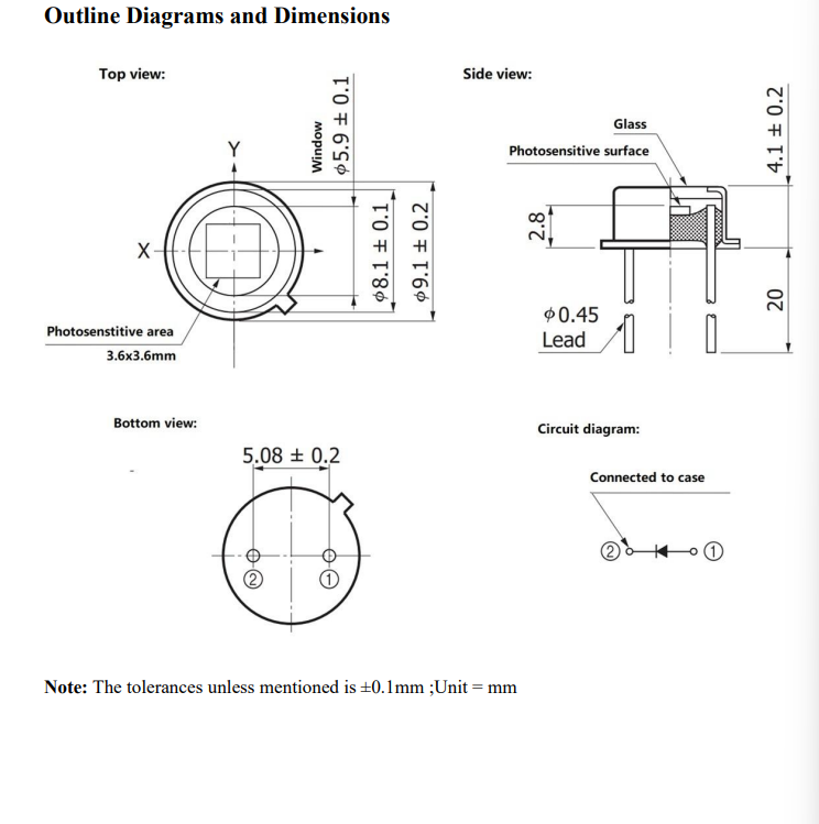 在苛刻的环境中具有高可靠性 工作温度为-40至+80℃,存储温度为-40到+120℃高响应性和低暗电流